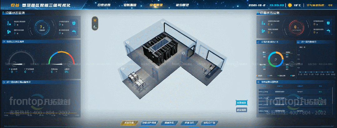 可视化系统实时检测各空间设备在空间中分布及运行状况、设备运营等统计数据。AI智能预测设备故障,并可一键定位到设备具体位置查看告警详情。