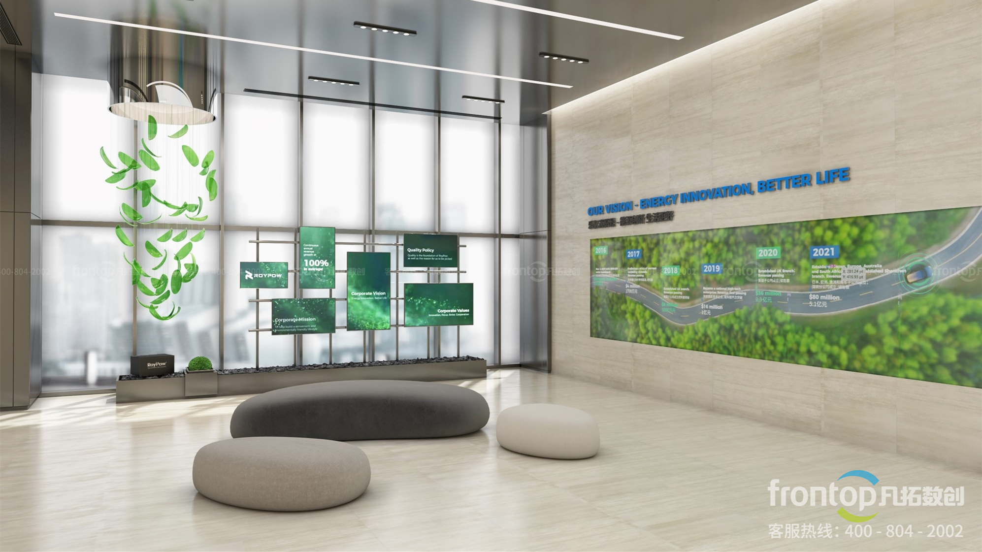 在乐亿通总部新园区落成正式启用之际,凡拓数创助力企业打造品牌体验空间,以简洁现代的语言,展示出更具辨识度的科技化、国际化的品牌形象,传递企业“能源创新、生活更好”的愿景。