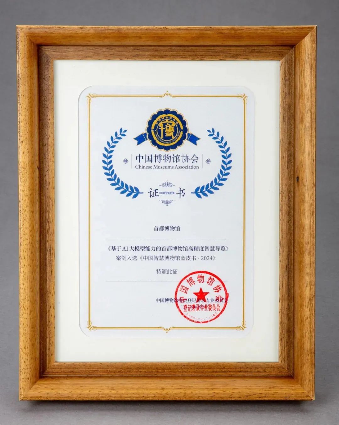 这套AI智慧导览系统入选了《中国智慧博物馆蓝皮书•2024》,及入围“2025年度中华文物新媒体传播精品推介项目”。