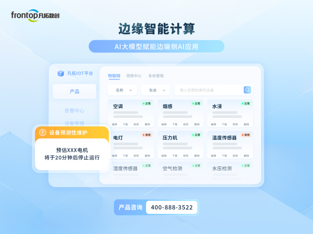 基于AI多模态理解能力与凡拓数据中台多源异构数据解析识别能力,实现海量数据的自动化解析与数据挖掘。从海量数据中提取有价值的信息,并进一步开展风险、故障预测、生成治理预案,辅助平台进行预测性维护与安全运营优化。