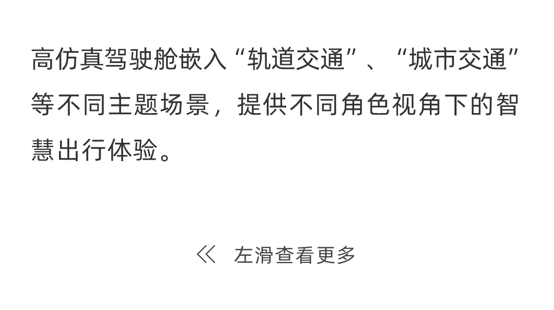 未来的城市出行将有多智能?坐上高仿真模拟驾驶舱,感受全自动轨交驾驶、救护车应急救援、城市居民智慧出行的沉浸驾驶体验。以第一视角体验加深对智慧调度管控关键作用的认知与认同。