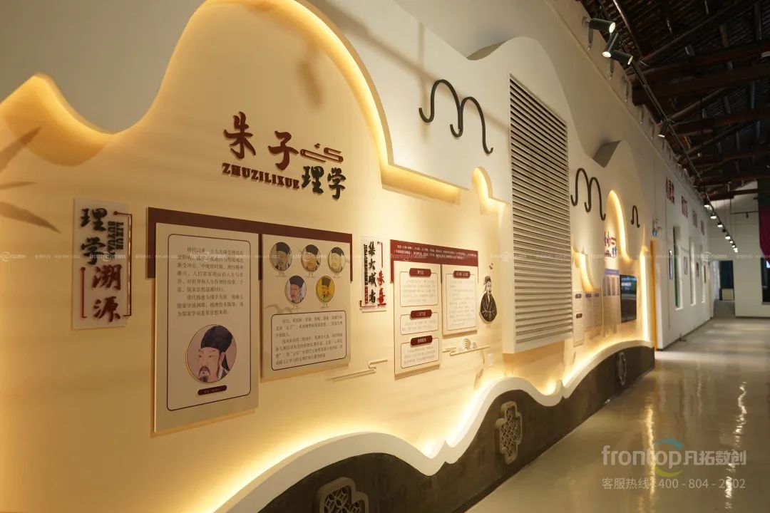 沿左侧穿过序厅,探寻理学历史长河中的名人足迹。图文展板呈现理学起源、发展及在陈村一带生根发芽的历史进程。