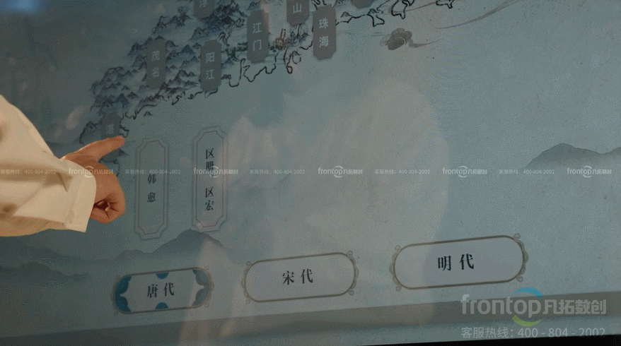 观摩完静态的理学发源入粤史迹,还可在图文展墙上的互动一体机点触查阅理学名人旅居足迹。