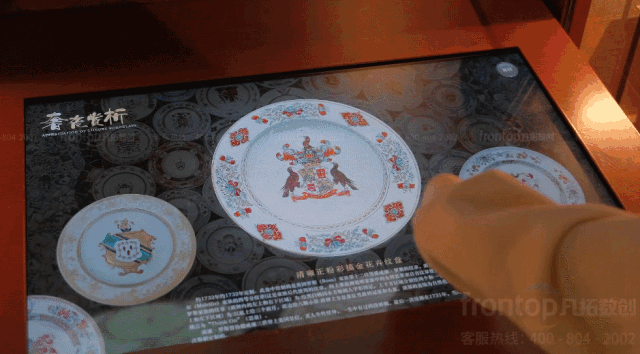 观众不仅可以通过互动模块了解纹章瓷历史背景信息,还可自由选择纹样、纹章素材,自定义落款,打造出个性化“纹章瓷”。