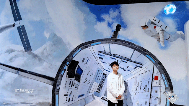 采用群景构图,让实物展品与空间融合得更加和谐。不仅在色调上融入展厅整体风格,更将产品与珠穆朗玛峰的雪山生态、科技感十足的太空舱以及神秘的深海等几个明星产品“上天入地”参与国际级项目的纪念画面通过更加自然艺术的方式相结合。同时国际空间站的裸眼3D视觉错位创意让观赏拍照更具趣味。