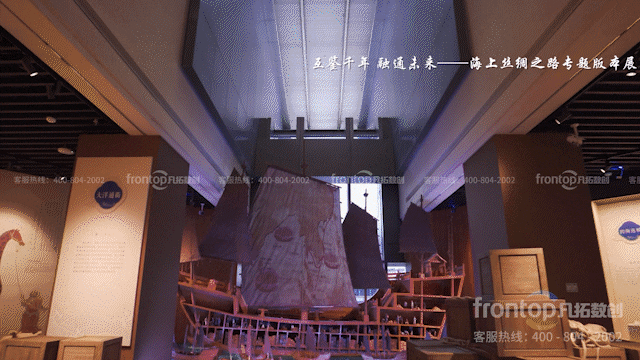 海浪、航船等与海丝密切相关的元素,营造起航海空间氛围,以多样化、多元化的多媒体场景演绎,讲好中外美美与共的海丝故事。