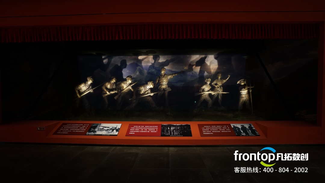凡拓智慧党建又一标杆项目,中共广东省委粤北省委历史陈列馆(1938—1942),凡拓创意团队秉持弘扬历史文化、传承艰苦卓绝的革命精神,应用数字创意技术,还原历史文化场景,打造数字一体化历史陈列博物馆。展厅综合运用了立体浮雕、造型展墙、立体灯箱、光电沙盘、幻影成像、场景复原、场景投影艺术剧场等多媒体数字展项,全方位、立体化地展示了粤北党建文化,生动诠释了中共广东省委粤北省委抗战救亡的峥嵘岁月。