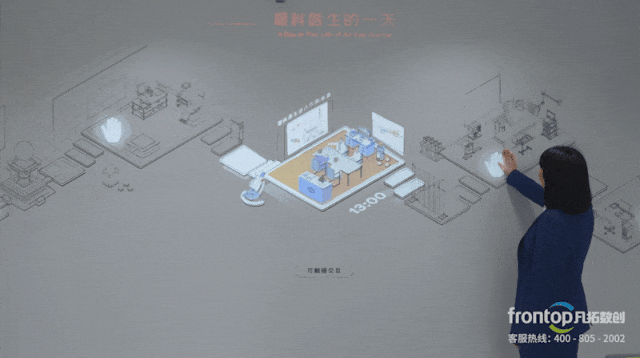 在讲解厅中,凡拓团队通过裸眼3D影片讲述“眼睛的进化史”,让观众在生动有趣的动画中构建对眼睛的基础认识,从而开启眼健康之旅。