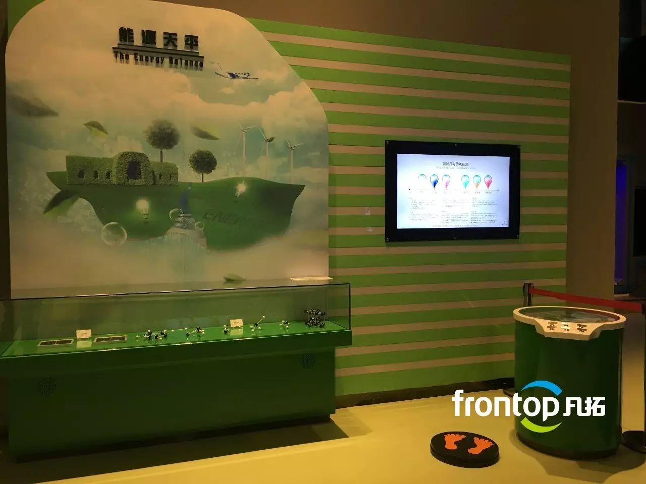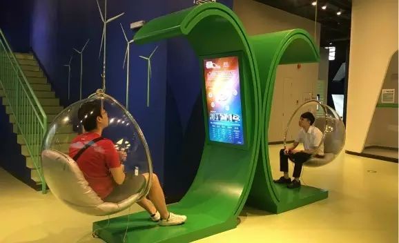 参观者站在电子体重秤上,拨动转盘选择能源,屏幕上即可显示与游客同等质量的煤炭所具有的能量,并通过LED装置,了解让LED灯亮起来的此类能量消耗量。