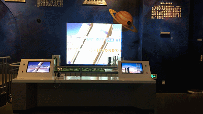透过触摸按钮选择体验内容,观看实体模型与显示屏影片介绍,全息幻影成像立体影像。