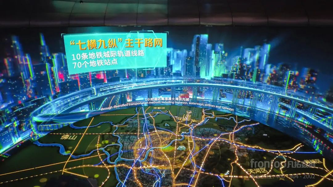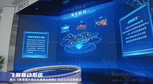 飞屏联动系统展示《粤港澳大湾区发展规划纲要》及白云区发展概况。