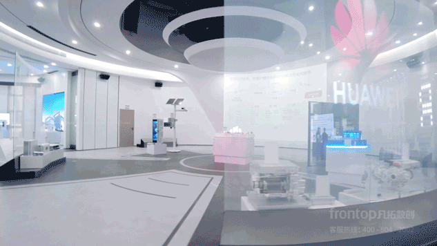 创意性引入机电玻璃屏风作为空间区划的方式,屏风采用滑轨悬吊、中控智能控制、语音智能控制,可做到一键轻松开合,一键切换透明模式和雾化模式,既可营造一体化大临展空间,又可营造独立的主题临展空间,满足多样化的空间使用需求。
