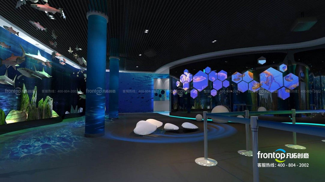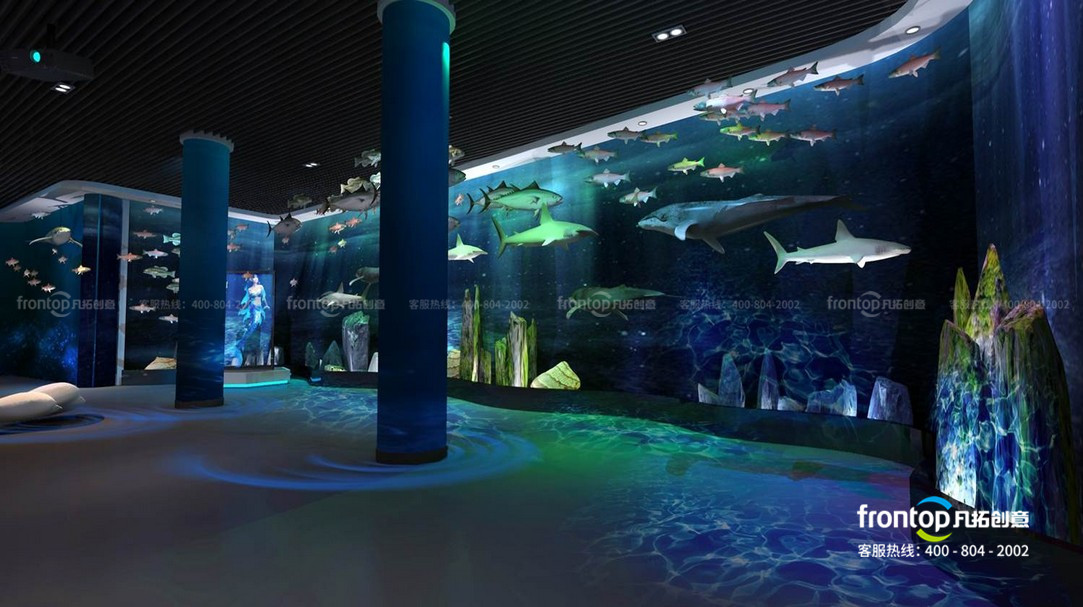 凡拓数创承接了江西九江大千世界海洋馆的设计施工一体化工程,通过数字多媒体科技,比如三维动画虚拟、互动多媒体、增强现实技术,带领人们于游玩中探索海洋奥秘,成为科普教育与游乐探索的相结合。其中,采用了数字化海底隧道虚拟仿真系统。