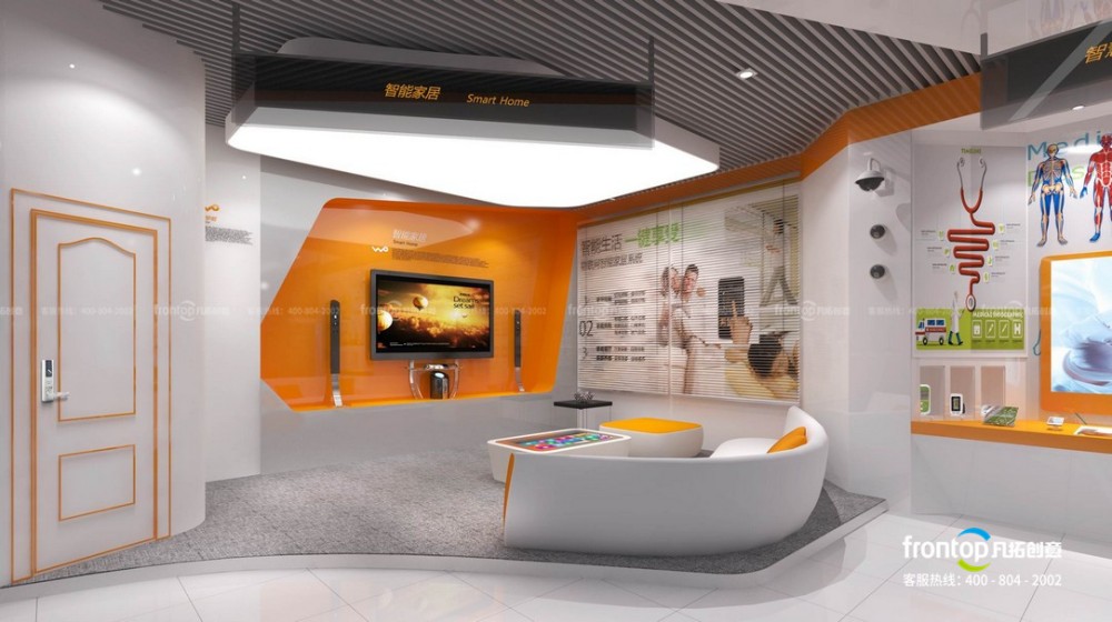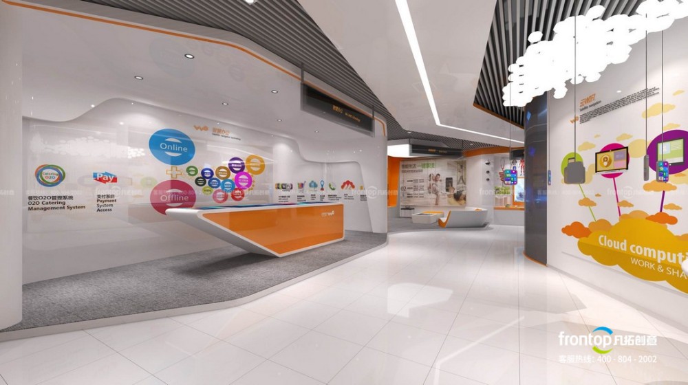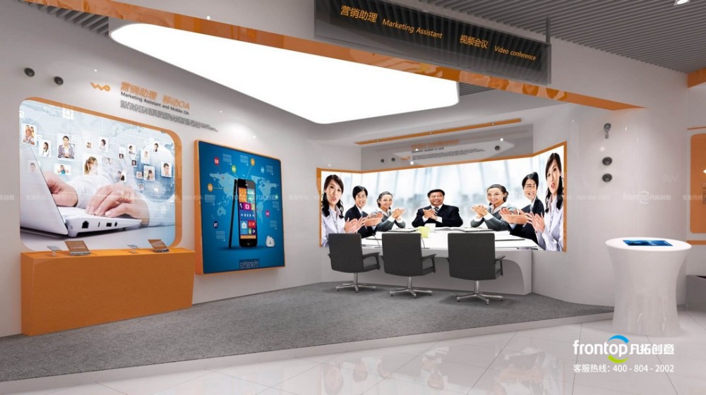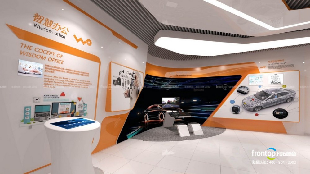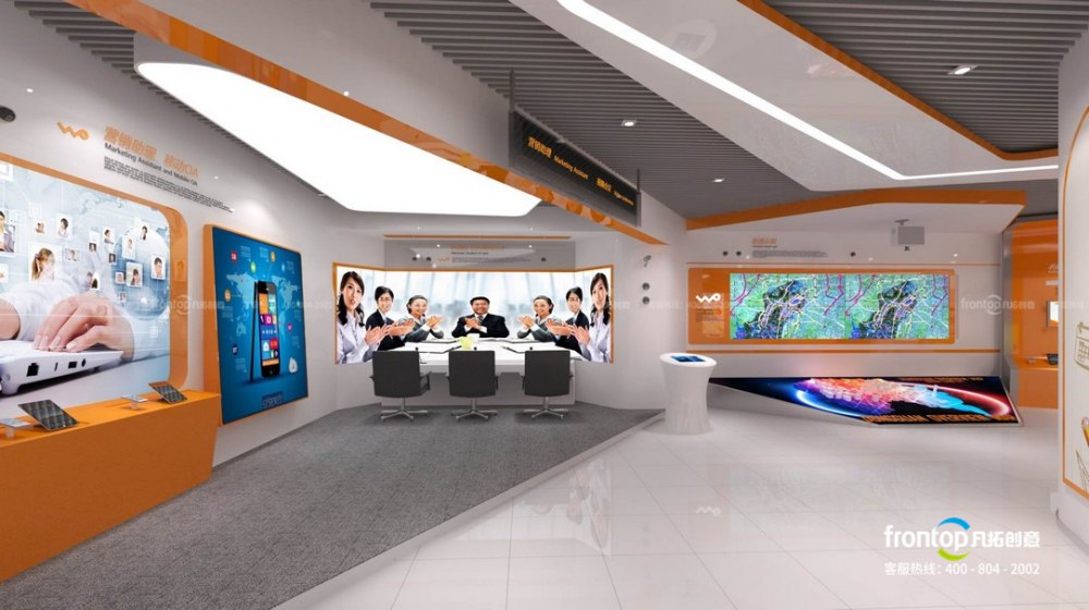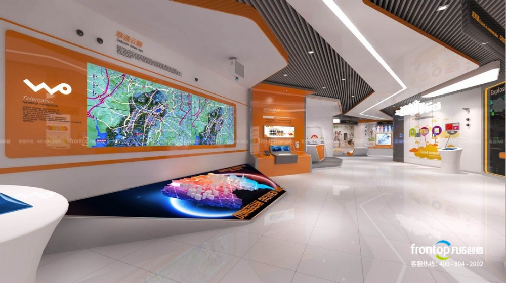 由展厅智能终端控制系统控制,通过虚拟驾驶、240°沉浸式互动全息投影、体感摄像等互动体验式展示方式,展示联通新领域业务产品,将联通各种应用融入生活当中,体现不一样的生活方式。刺激顾客业务需求,助力营销团队。