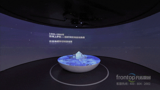 兼具互动性与视觉美的金字塔沙盘裸眼3D Mapping,结合弧幕影片从时间、空间、产业三个维度展现深圳、福田与新一代产业园在发展上紧密相扣,共生共长,互相成就。