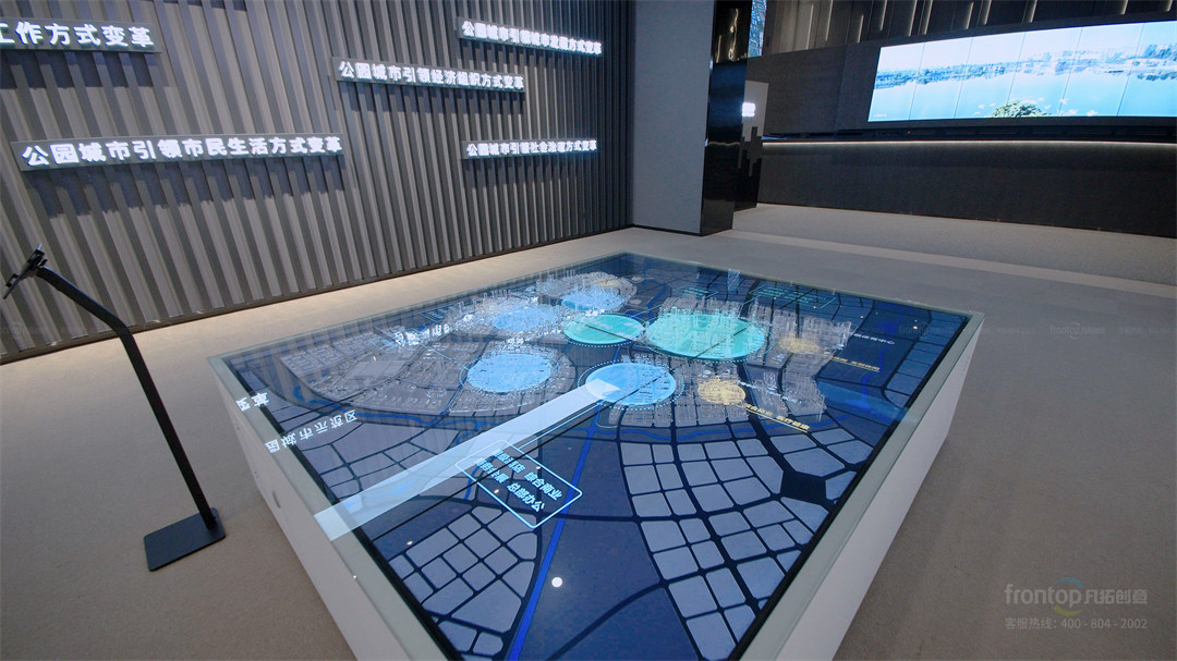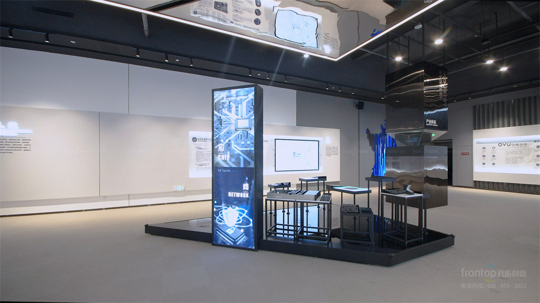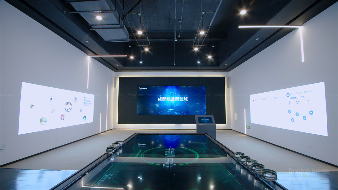 成都芯谷是成都电子信息产业发展主阵地,目标打造成都副中心、双流新中心、公园城市示范区及千亿级产业生态圈。展馆依据成都芯谷“人城产”营城逻辑,讲述芯谷的公园城市建设、芯网核航产业发展、城市产业服务运营,并从人的视角反观新城建设及服务生活。展馆设置大型L幕裸眼3D沉浸式总规影院、公园城市示范区水晶沙盘、一平台八中心产业服务体系模块交互、芯谷异形地图总规交互等新媒体展项,整体设计简洁、现代、体验丰富,从接触项目到建设落成仅2个月时间,成功打造芯谷展示、招商平台。
