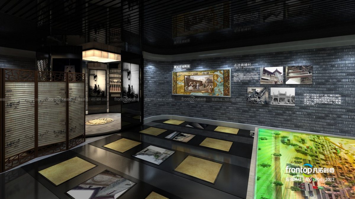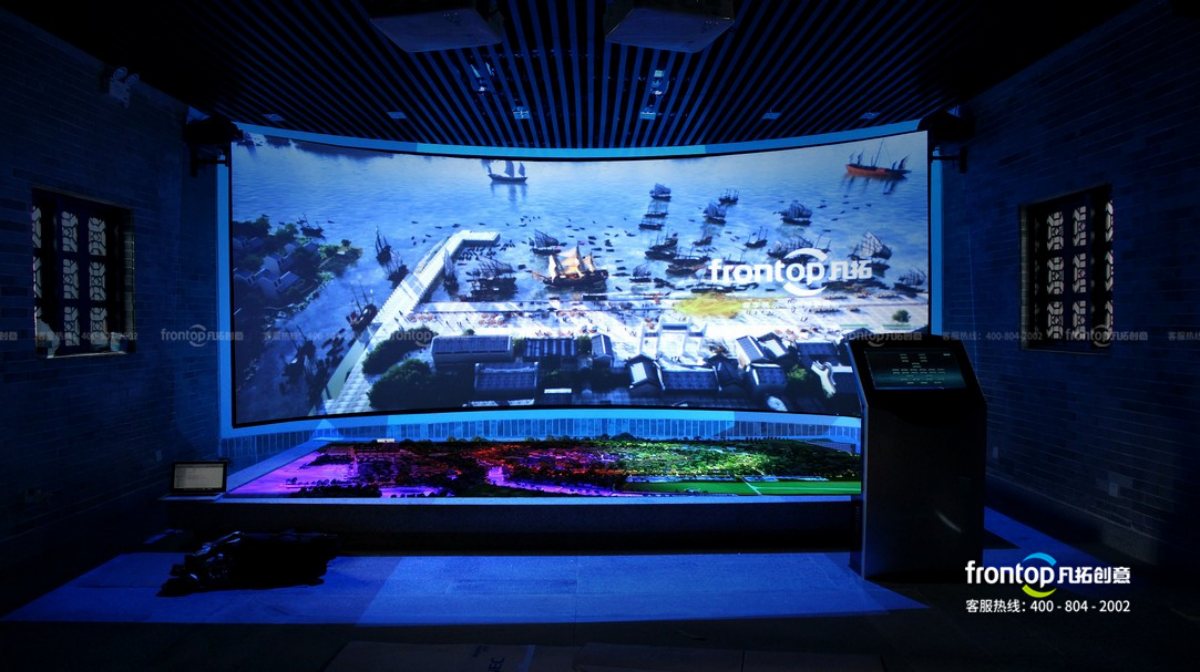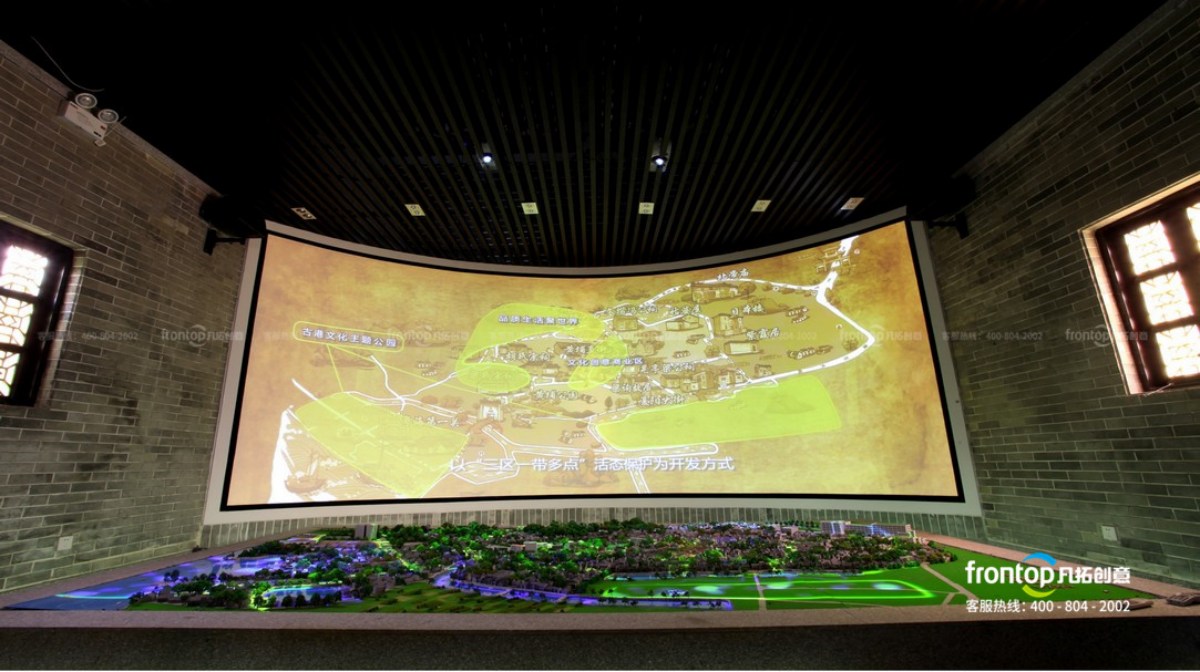 黄埔历史文化村多媒体数字展馆,以高端性、前瞻性、集约性和智慧性为指导方向,浓缩岭南文化精粹,使展馆成为黄埔古港古村的整体形象展现空间,令人们领会黄埔古港古村的历史文化意义。数字地图信息系统结合现代沙盘技术,将古村落的各类相关信息交互的呈现在观众面前。