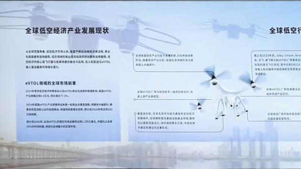 服务中心一楼是国内外首个集成果展示、科普宣传等主题为一体的低空经济产业展厅,暂无前例可循。