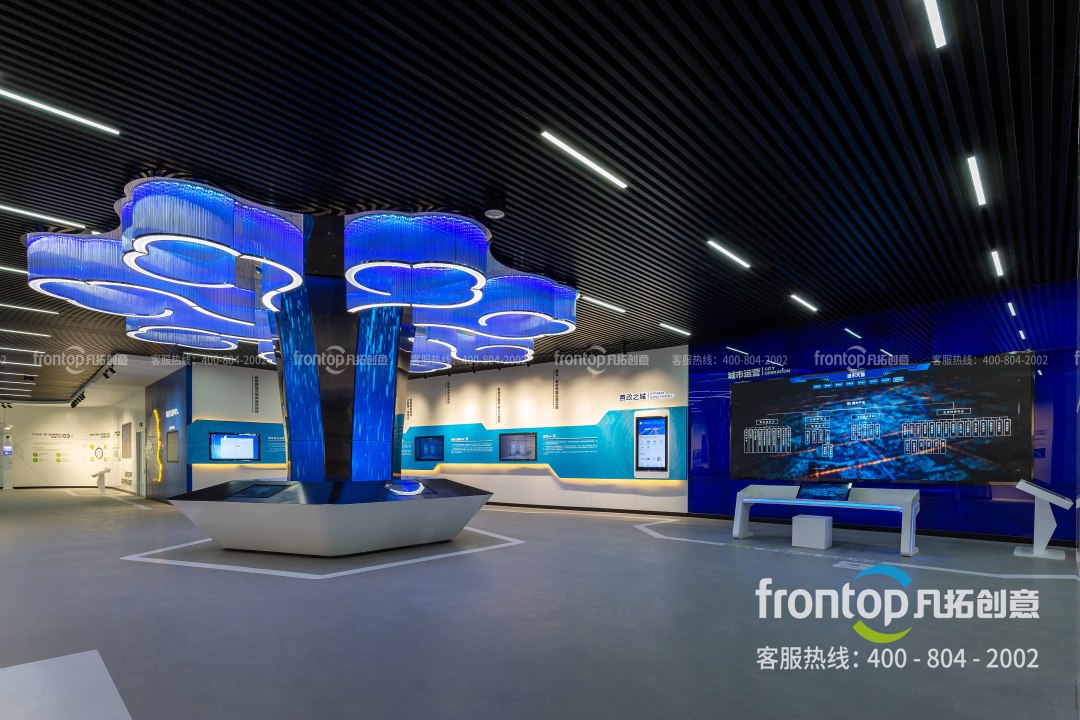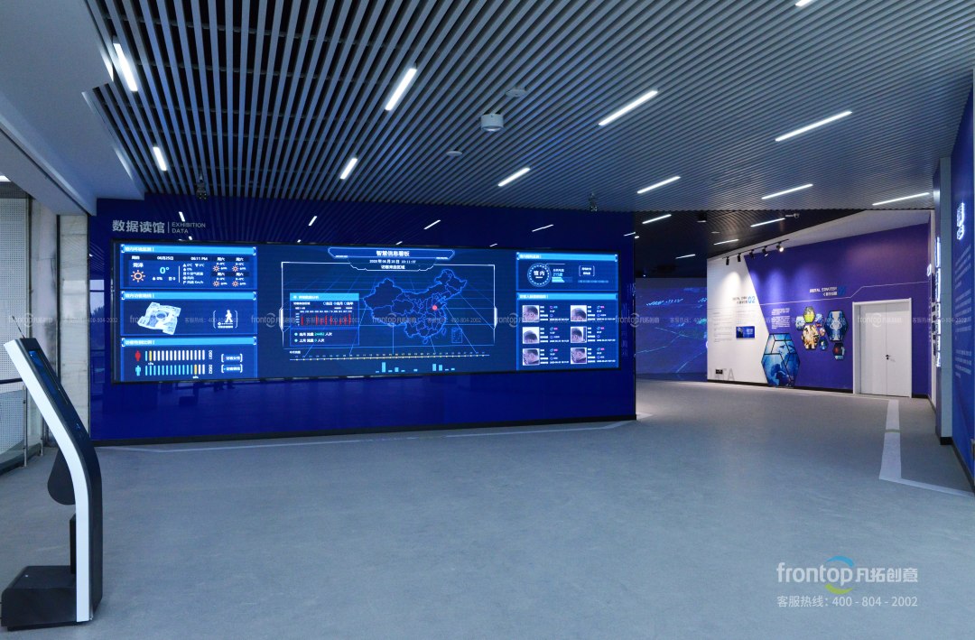 菏泽智慧城市运营暨鲁西南大数据展示中心坐落于菏泽开发区内,总建筑面积1万平方米,展厅一期面积1270平方米,共分为五个展示区域。展厅通过人工智能、大数据等信息技术以及VR虚拟现实、沉浸式环绕沙盘、BOX全景沉浸式影院等新兴媒体展示手段,全面展现鲁西南大数据中心规划建设成果以及菏泽市数字政府建设成果,用数据打造新型智慧城市标杆展馆。